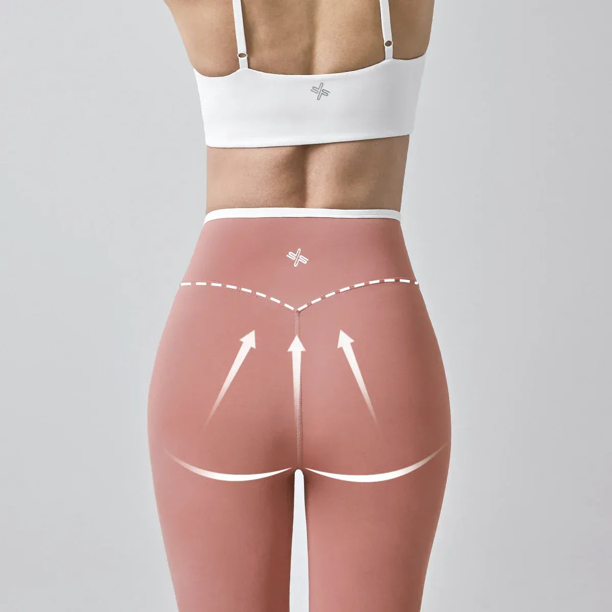 The V-shaped seam on the back enhances the curve of the hips, creating a rounded and lifted appearance.