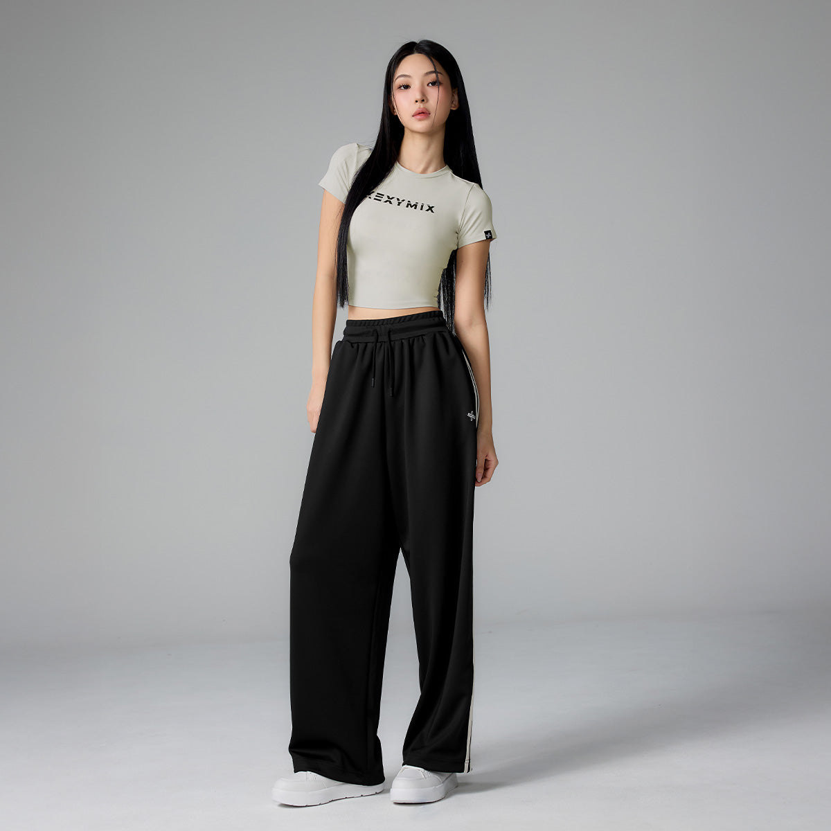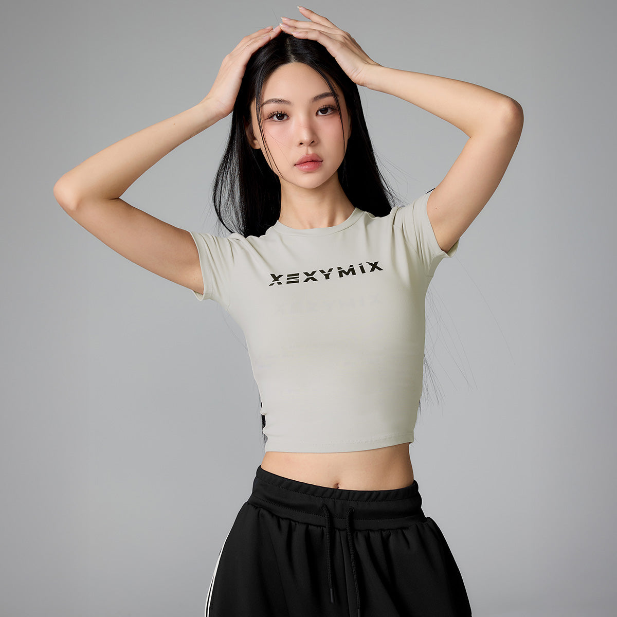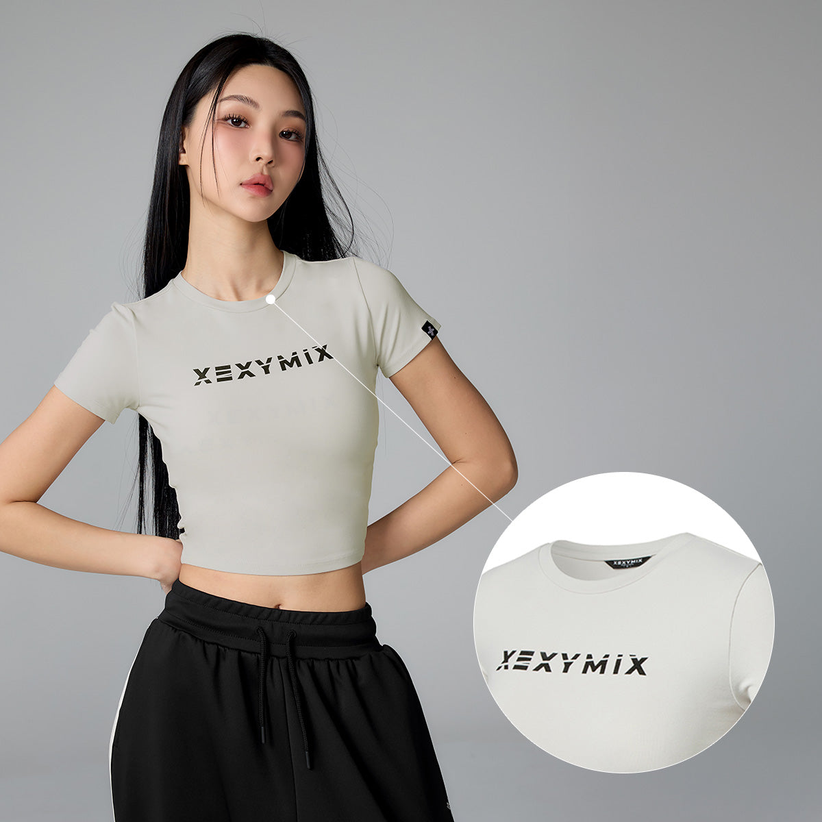 It is designed with a cropped length that falls above the pelvis and a slim fit to highlight the volume, and can be worn comfortably by matching it with high-waisted leggings.